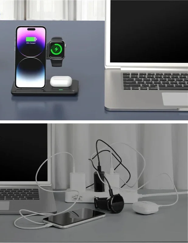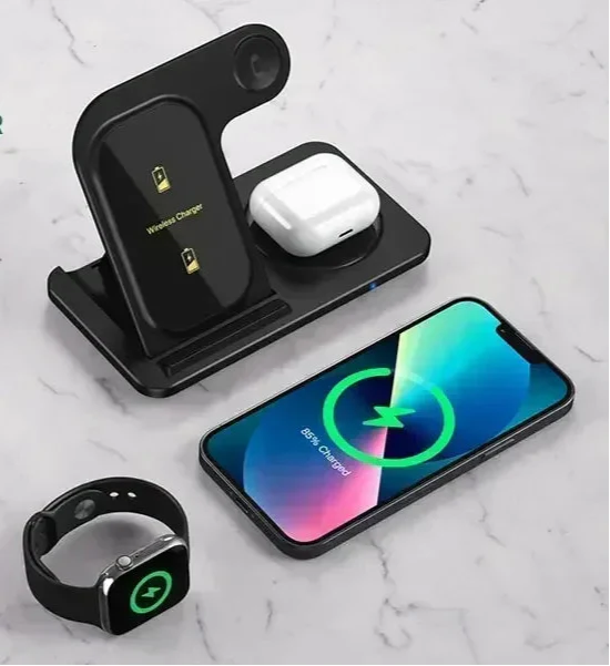 Carregador Sem Fio 3 em 1 Dobrável – iPhone, Apple Watch e AirPods | Samsung