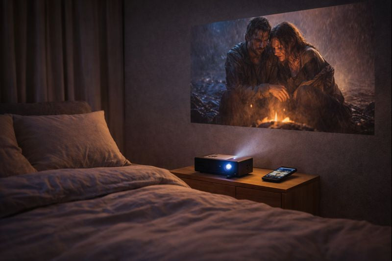 Filmes e séries projetados direto na parede, sem TV.